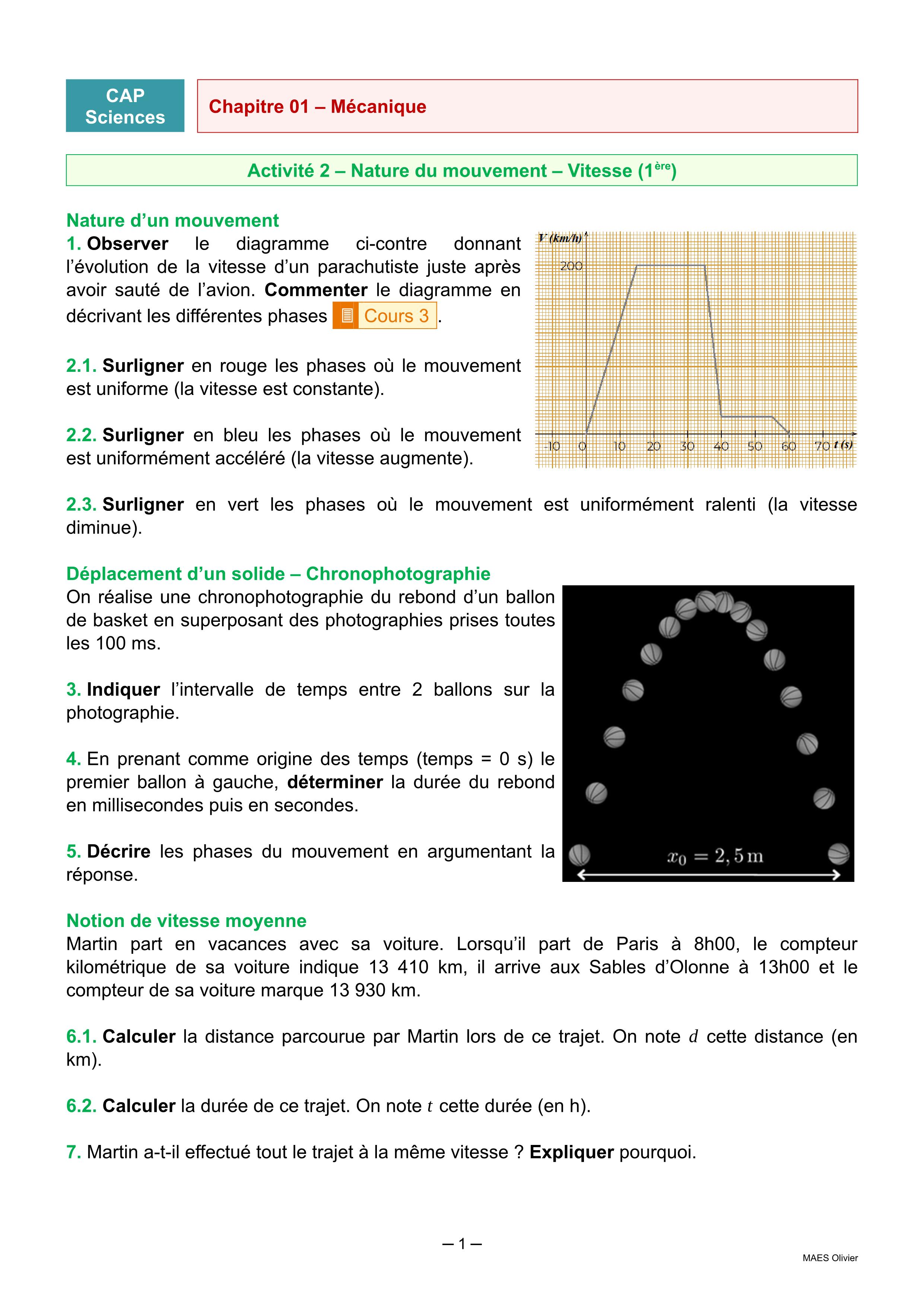 Activité 2 - Nature du mouvement - Vitesse (1ère) Doc