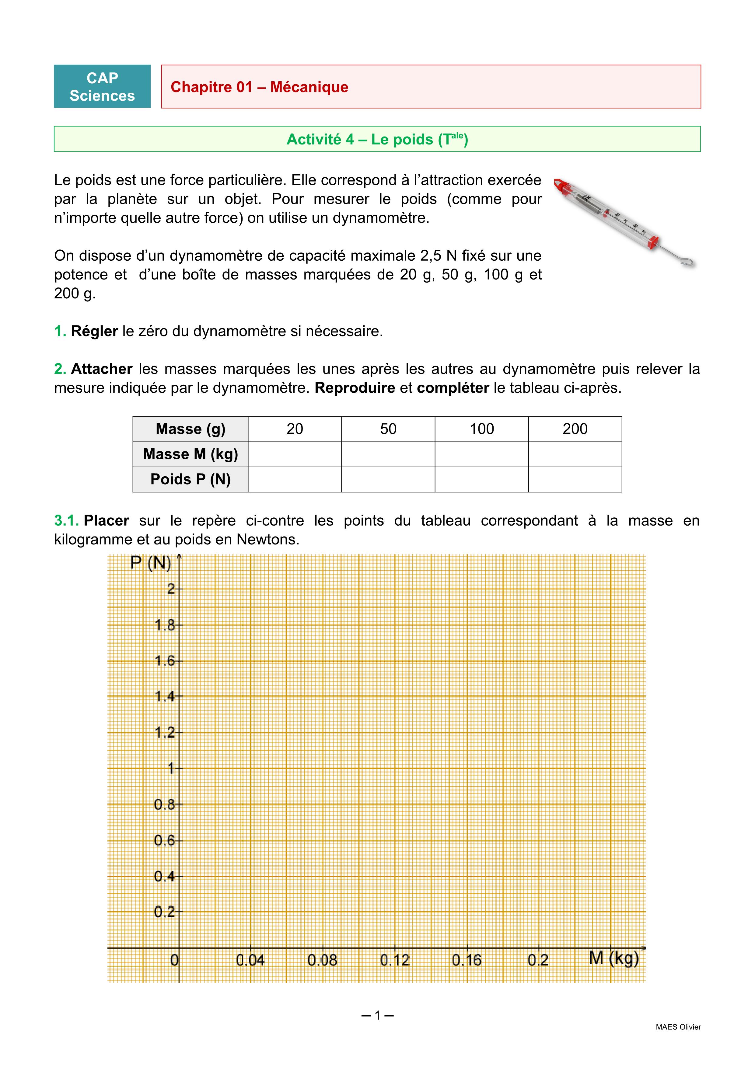 Activité 3 - Actions mécaniques - Forces (Tale) Doc 🔒Cor 🔒DS3a